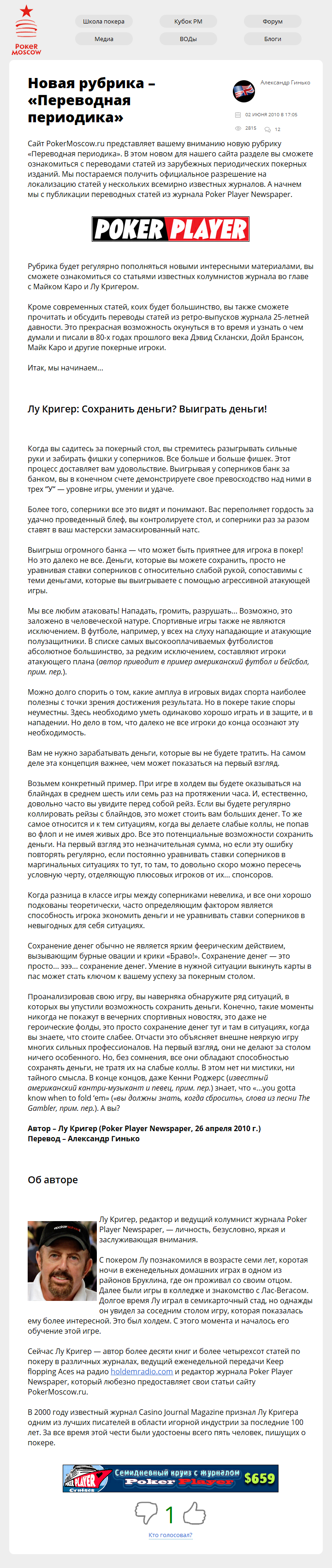 Новая рубрика – «Переводная периодика» Опубликовано 02.06.201027.09.2017 Опубликовано по ссылке: Сайт PokerMoscow.ru представляет вашему вниманию новую рубрику «Переводная периодика». В этом новом для нашего сайта разделе вы сможете ознакомиться с переводами статей из зарубежных периодических покерных…