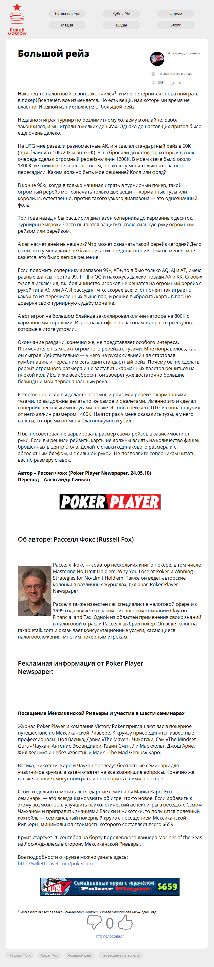 Большой рейз Опубликовано 10.06.201008.02.2019 Опубликовано по ссылке: Наконец-то налоговый сезон закончился, и мне не терпится снова поиграть в покер! Все течет, все изменяется. Но есть вещи, над которыми время не властно. И одной из них является… большой…