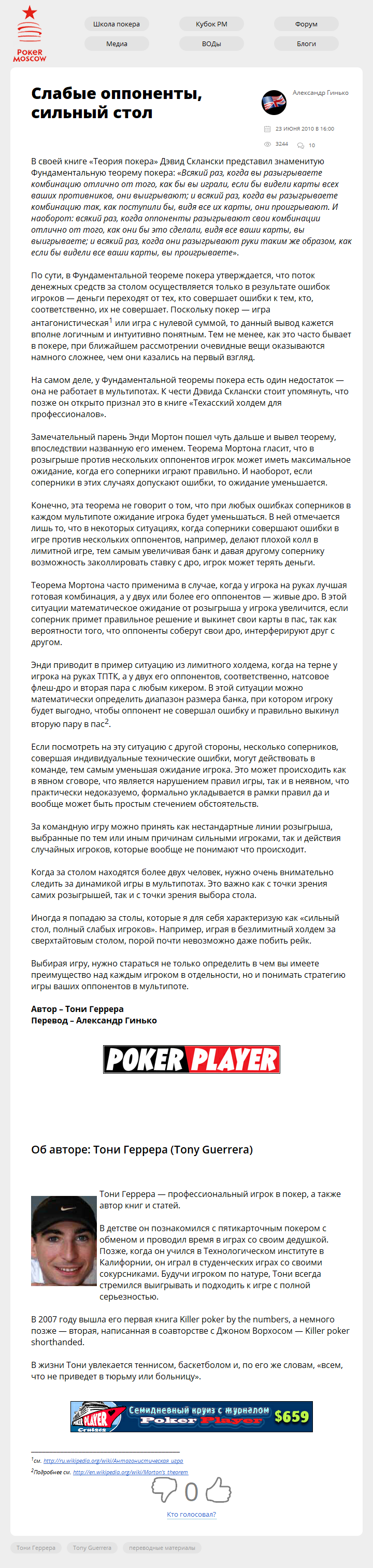 Слабые оппоненты, сильный стол Опубликовано 23.06.201027.09.2017 Опубликовано по ссылке: В своей книге «Теория покера» Дэвид Склански представил знаменитую Фундаментальную теорему…