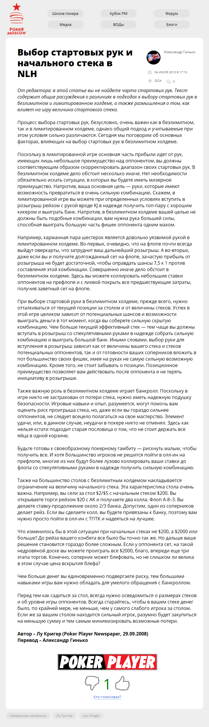 От редактора: в этой статье вы не найдете чарта стартовых рук. Текст содержит общие рассуждения о различиях в подходах к выбору стартовых рук в безлимитном и лимитированном холдеме, а также размышления о том, как влияет на игру величина стартового…