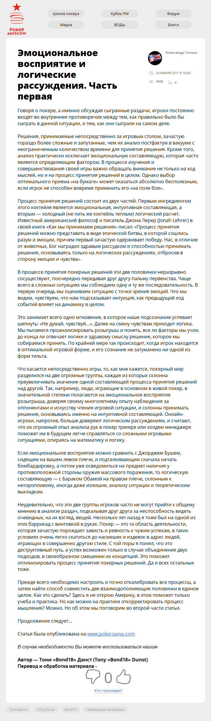 Эмоциональное восприятие и логические рассуждения. Часть первая
