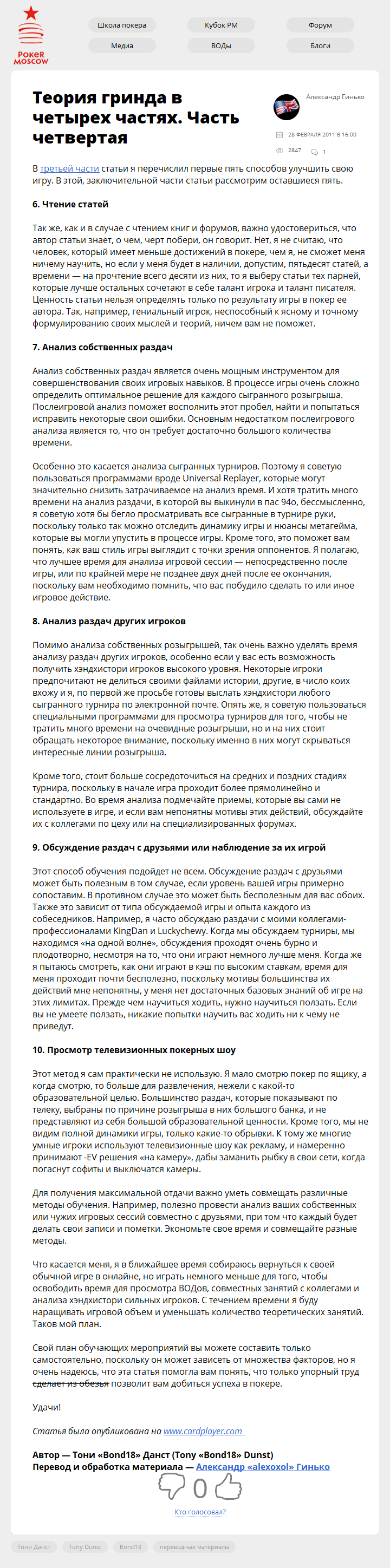 Теория гринда в четырех частях. Часть четвертая Опубликовано 28.02.201127.09.2017 Опубликовано по ссылке: В третьей части статьи я перечислил первые пять способов улучшить свою игру. В этой, заключительной части статьи рассмотрим оставшиеся…