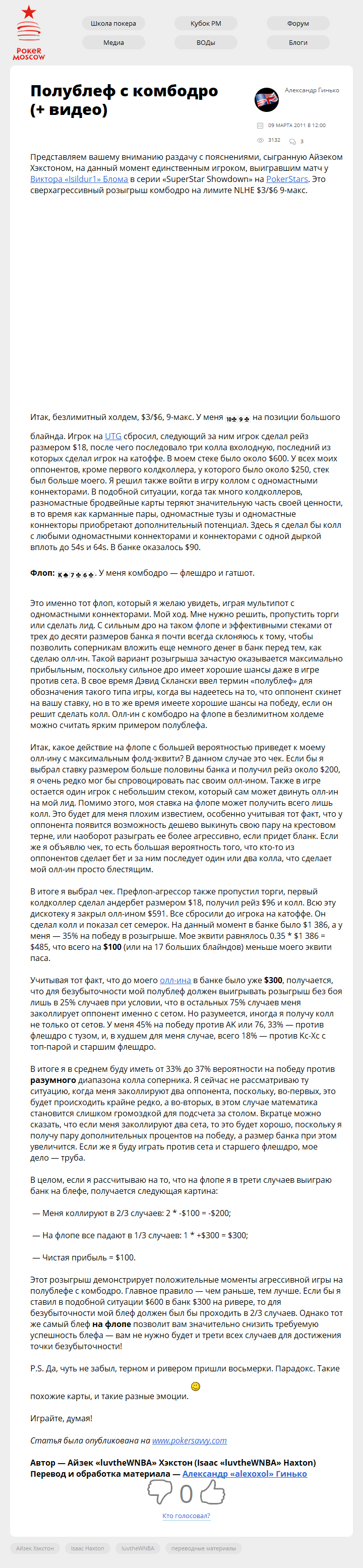 Представляем вашему вниманию раздачу с пояснениями, сыгранную Айзеком
