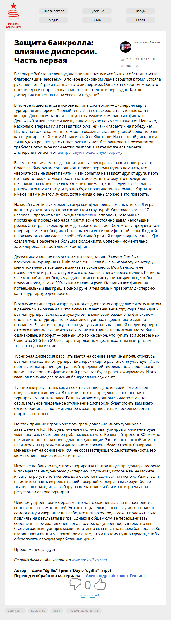 сводится к тому, устояла рука или нет. Игроки называют это дисперсией.