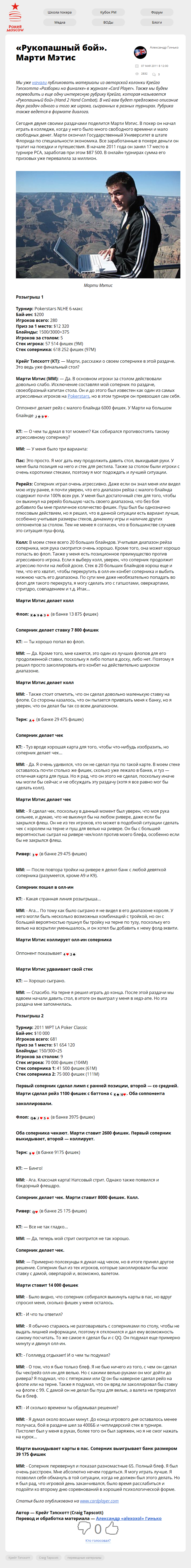 Тэпскотта "Разборки на финалке" в журнале "Card Player". Также мы будем