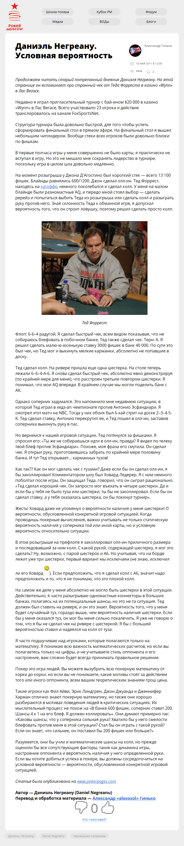 Даниэль Негреану. Условная вероятность Опубликовано 10.05.201127.09.2017 Опубликовано по ссылке: Продолжаем читать старый потрепанный дневник Даниэля Негреану. На этой странице он вспоминает про странный чек от Теда Форреста в казино "Wynn" в Лас…