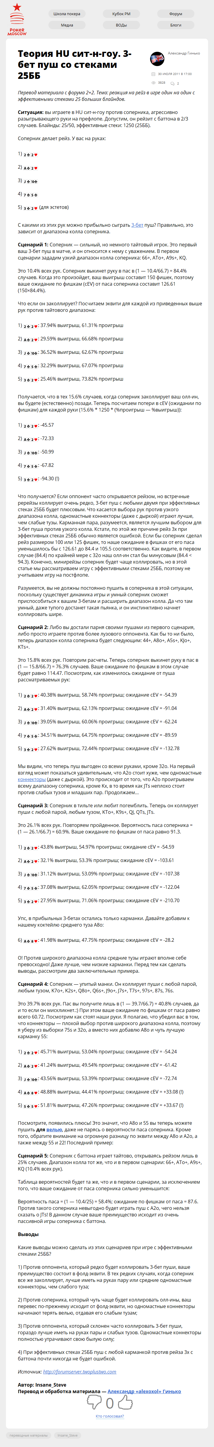 Теория HU сит-н-гоу. 3-бет пуш со стеками 25ББ Опубликовано 30.07.201127.09.2017 Опубликовано по ссылке: Перевод материала с форума 2+2. Тема: реакция на рейз в игре один на один с эффективными стеками 25 больших…