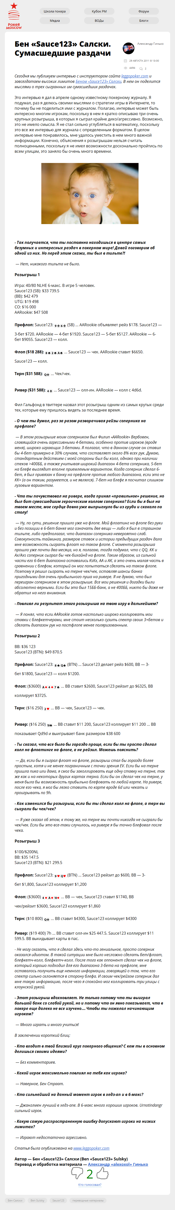 завсегдатаем высоких лимитов Беном "Sauce123" Салски. В