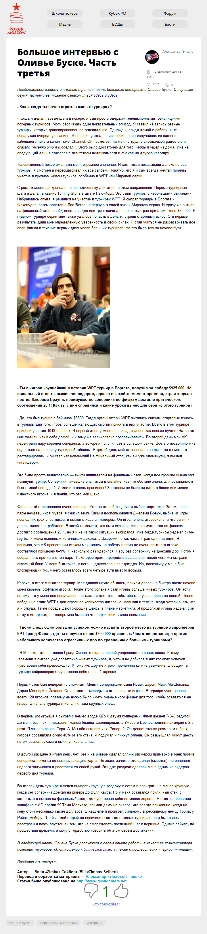 Представляем вашему вниманию третью часть большого интервью с Оливье Буске. С первыми двумя частями вы можете ознакомиться здесь и здесь.