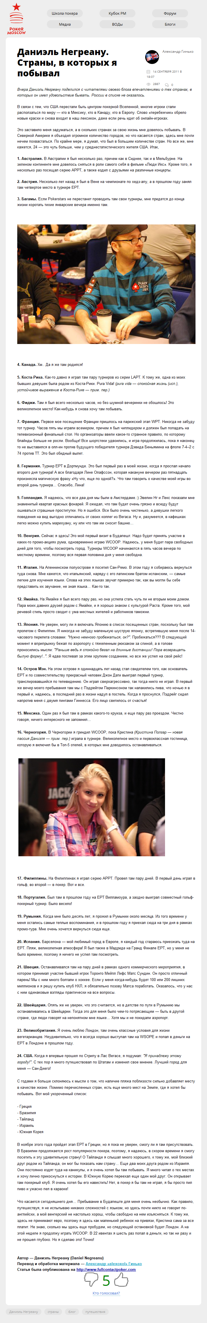 Вчера Даниэль Негреану поделился с читателями своего блога впечатлениями о тех странах, в которых он имел удовольствие бывать. России в списке не оказалось.