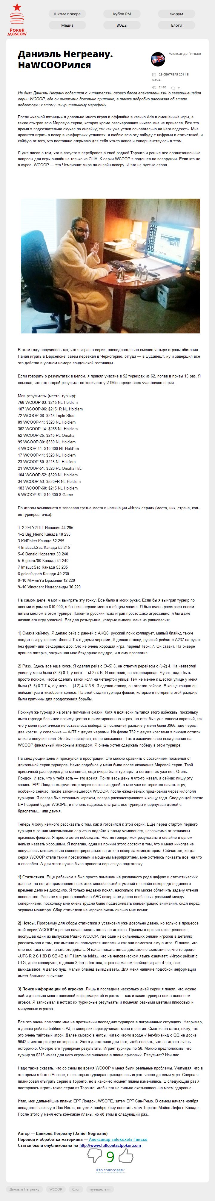 На днях Даниэль Неграну поделился с читателями своего блога впечатлениями о завершившейся серии WCOOP, где он выступил довольно прилично, а также подробно рассказал об этапе подготовки к этому изнурительному марафону.