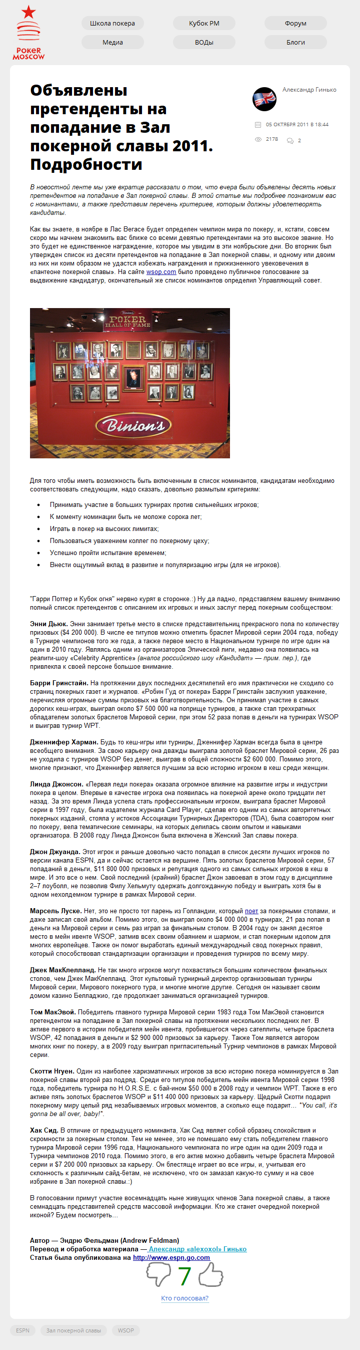 В новостной ленте мы уже вкратце рассказали о том, что вчера были объявлены десять новых претендентов на попадание в Зал покерной славы. В этой статье мы подробнее познакомим вас с номинантами, а также представим перечень критериев, которым должны удовлетворять кандидаты.
