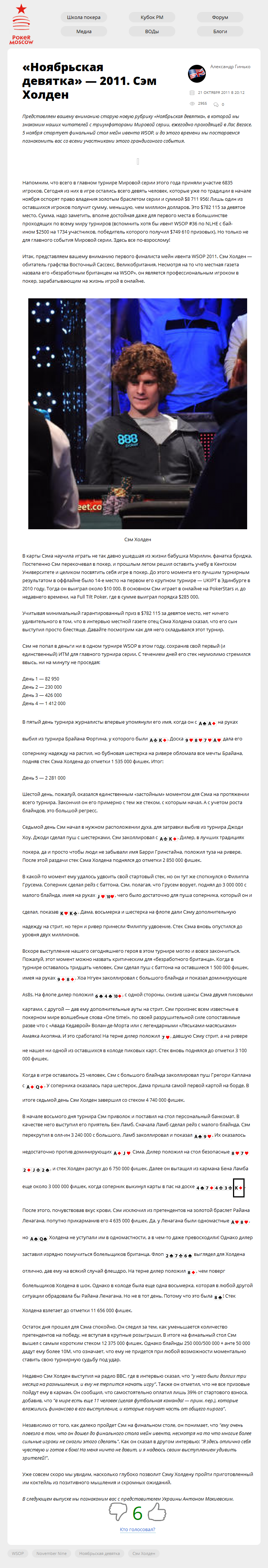 Представляем вашему вниманию старую новую рубрику "Ноябрьская девятка", в которой мы знакомим наших читателей с триумфаторами Мировой серии, ежегодно проходящей в Лас Вегасе. 5 ноября стартует финальный стол мейн ивента WSOP, и до этого времени мы постараемся познакомить вас со всеми участниками этого грандиозного…