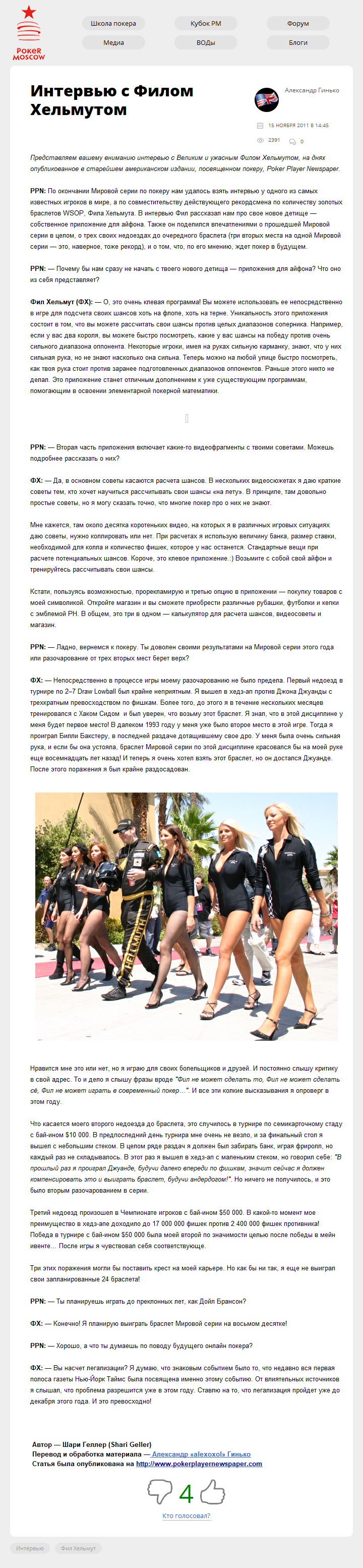 Представляем вашему вниманию интервью с Великим и ужасным Филом Хельмутом, на днях опубликованное в старейшем американском издании, посвященном покеру, Poker Player Newspaper.
