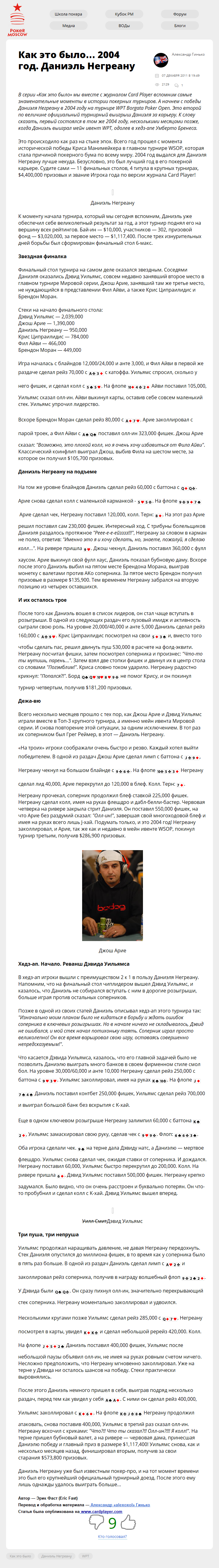 В серии "Как это было" мы вместе с журналом Card Player вспомним самые знаменательные моменты в истории покерных турниров. А начнем с победы Даниэля Негреану в 2004 году на турнире WPT Borgata Poker Open. Это второй по величине официальный турнирный выигрыш Даниэля за карьеру. К слову сказать, первый состоялся в том же 2004 году,…