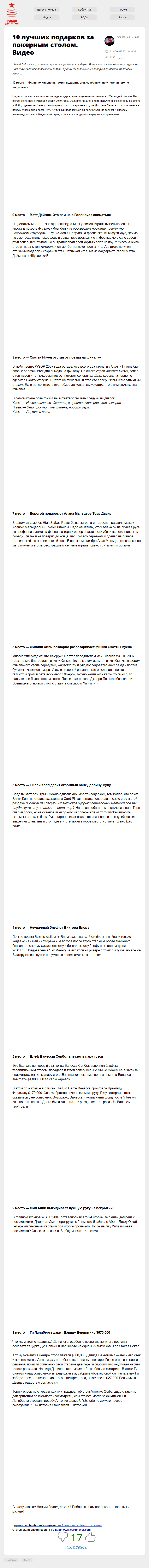 Новый Год на носу, а значит пришла пора дарить подарки! Вот и мы сегодня вместе с журналом Card Player решили вспомнить десять лучших телевизионных подарков за покерным столом. Итак…