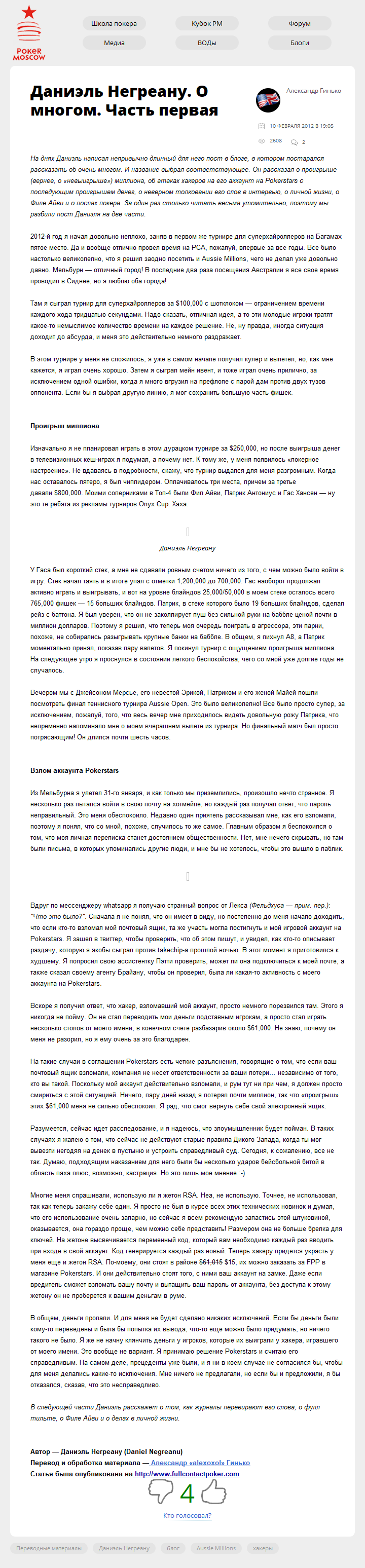 На днях Даниэль написал непривычно длинный для него пост в блоге, в котором постарался рассказать об очень многом. И название выбрал соответствующее. Он рассказал о проигрыше (вернее, о "невыигрыше") миллиона, об атаках хакеров на его аккаунт на Pokerstars с последующим проигрышем денег, о неверном толковании его слов в интервью, о…