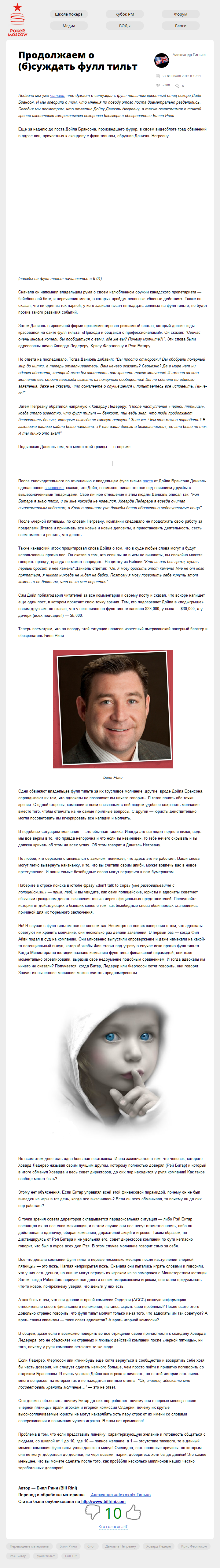 Недавно мы уже читали, что думает о ситуации с фулл тильтом крестный отец покера Дойл Брансон. И мы говорили о том, что мнения по поводу этого поста диаметрально разделились. Сегодня мы посмотрим, что ответил Дойлу Даниэль Негреану, а также ознакомимся с точкой зрения известного американского покерного блоггера и обозревателя Билла Рини.