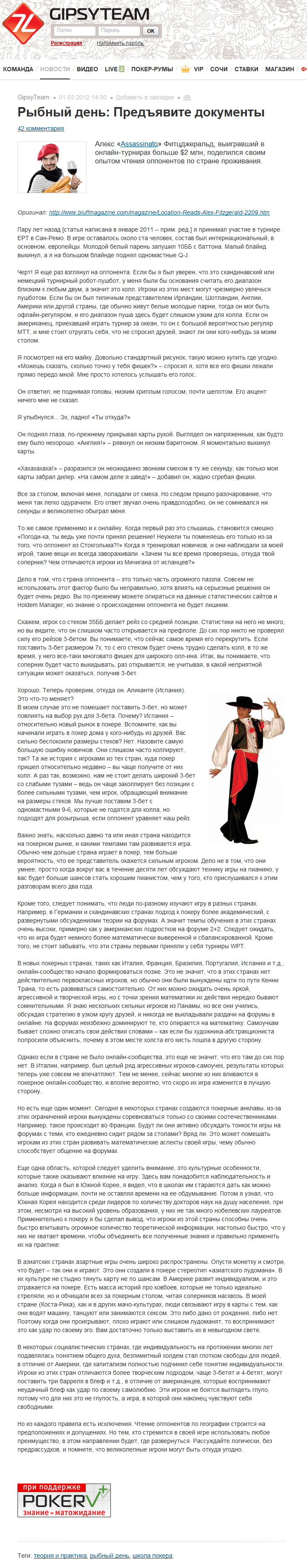Рыбный день: Предъявите документы Опубликовано 01.03.201228.09.2017 Опубликовано по ссылке: Алекс «Assassinato» Фитцджеральд, выигравший в онлайн-турнирах больше $2 млн, поделился своим опытом чтения оппонентов по стране проживания.