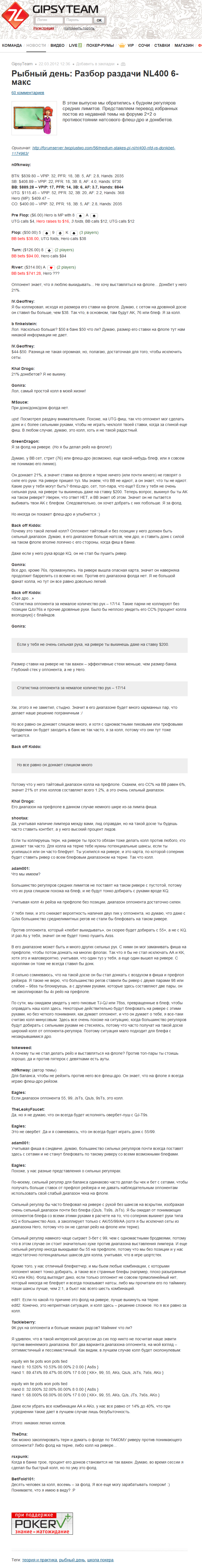 Рыбный день: Разбор раздачи NL400 6-макс Опубликовано 22.03.201228.09.2017 Опубликовано по ссылке: В этом выпуске мы обратились к будням регуляров средних лимитов. Представляем перевод избранных постов из недавней темы на форуме 2+2 о противостоянии натсового флеш-дро и донкбетов.