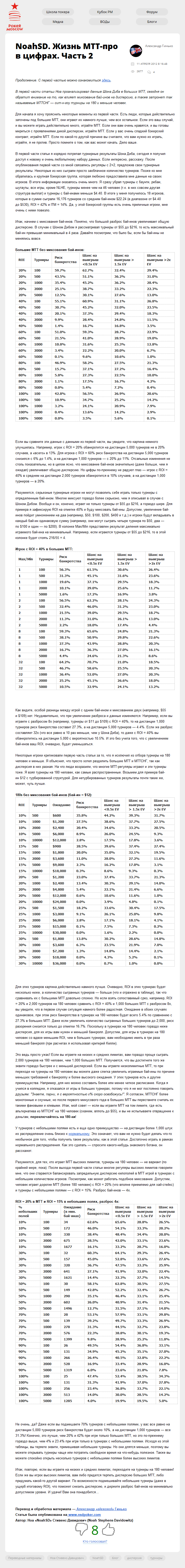 В первой части статьи Ноа проанализировал данные Шона Диба в больших МТТ, сегодня он обратит внимание на то, как влияет миксование бай-инов на дисперсию, а также затронет так называемые МТТСНГ — сит-н-гоу турниры на 180 и меньше человек.