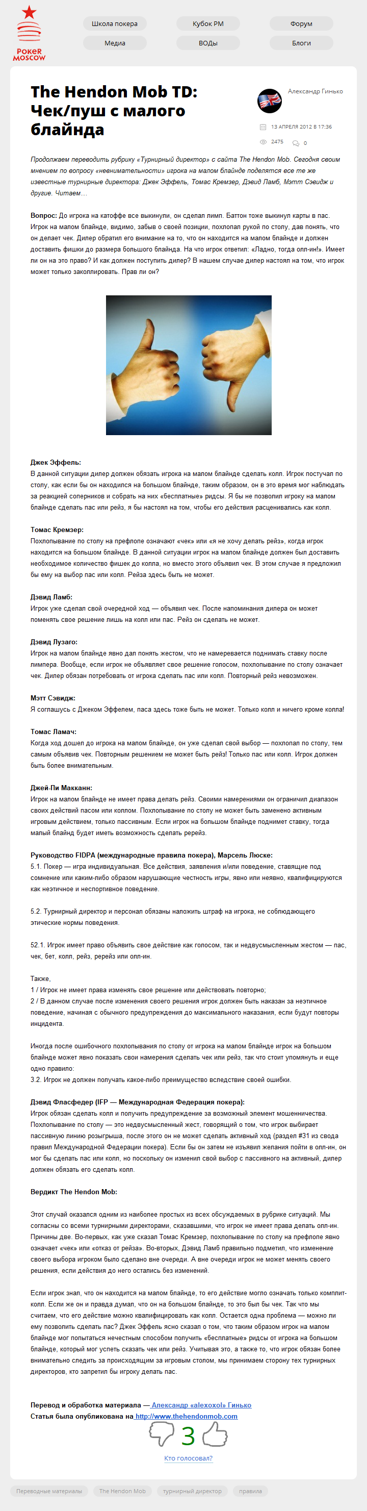 Продолжаем переводить рубрику "Турнирный директор" с сайта The Hendon Mob. Сегодня своим мнением по вопросу "невнимательности" игрока на малом блайнде поделятся все те же известные турнирные директора: Джек Эффель, Томас Кремзер, Дэвид Ламб, Мэтт Сэвидж и другие. Читаем…