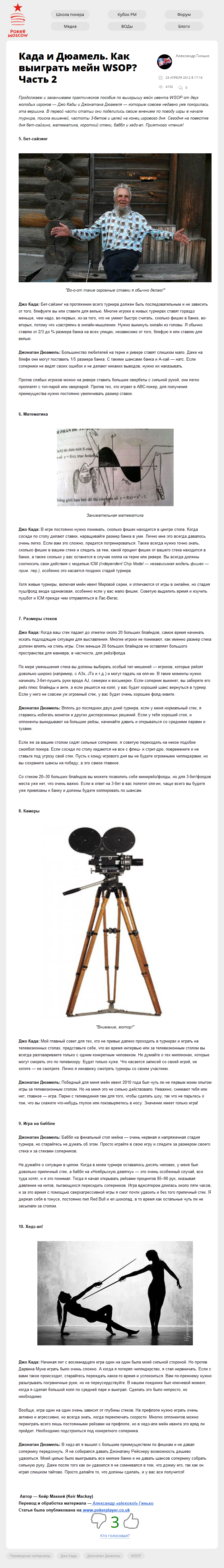 Продолжаем и заканчиваем практическое пособие по выигрышу мейн ивента WSOP от двух молодых игроков — Джо Кады и Джонатана Дюамеля — которым совсем недавно уже покорилась эта вершина. В первой части статьи они поделились своим мнением по поводу игры в начале турнира, поиска мишеней, частоты 3-бетов и целей на конец игрового дня. Сегодня на…