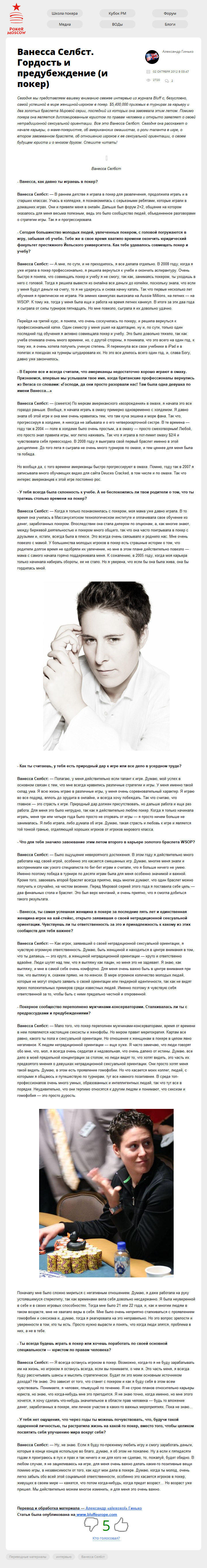 Сегодня мы представляем вашему вниманию свежее интервью из журнала Bluff с, безусловно, самой успешной в мире женщиной-игроком в покер. $5,400,000 призовых в турнирах за карьеру и два золотых браслета Мировой серии, последний из которых она завоевала этим летом. Помимо покера она является дипломированным юристом по правам человека и открыто…