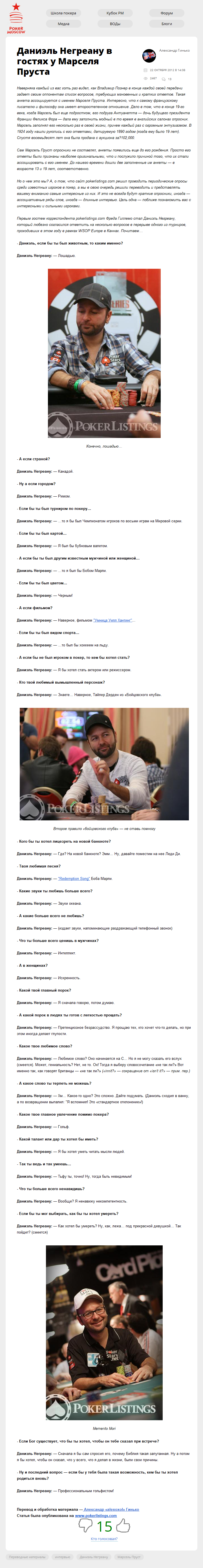 Наверняка каждый из вас хоть раз видел, как Владимир Познер в конце каждой своей передачи задает своим оппонентам список вопросов, требующих мгновенных и кратких ответов. Такая анкета ассоциируется с именем Марселя Пруста. Интересно, что к самому французскому писателю и философу она имеет второстепенное отношение. Дело в том, что в конце 19-го…