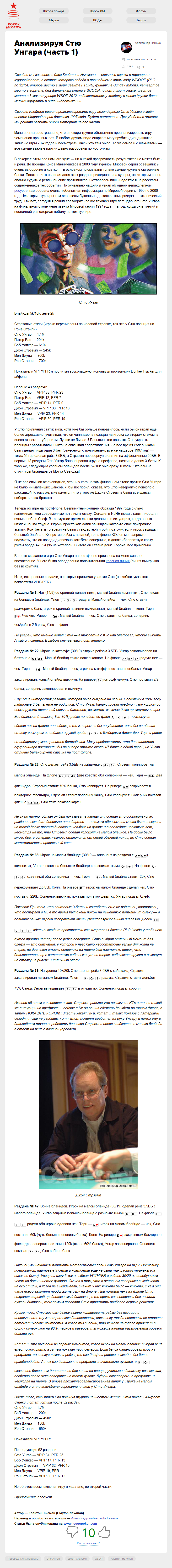 Сегодня мы заглянем в блог Клейтона Ньюмана — сильного игрока и тренера с leggopoker.com, в активе которого победа в прошедшем в этом году WCOOP (PLO по $215), второе место в мейн ивенте FTOPS, финалки в Sunday Millions, четвертое место в вормапе, два финальных стола в SCOOP по пот-лимит омахе, шестое место в 6-макс турнире WSOP 2012 по…