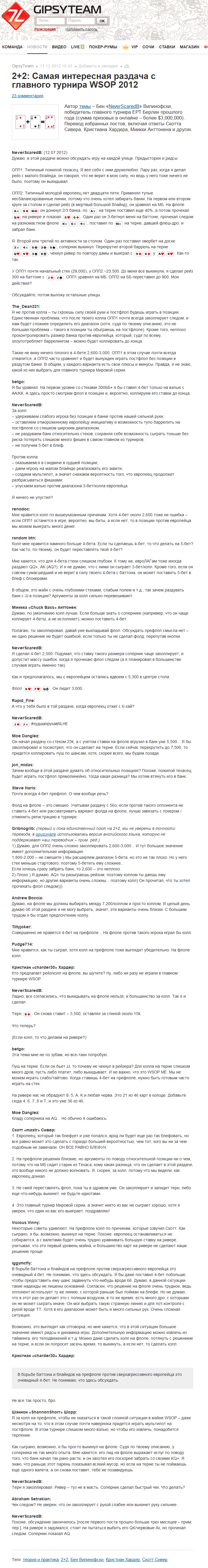 2+2: Самая интересная раздача с главного турнира WSOP 2012