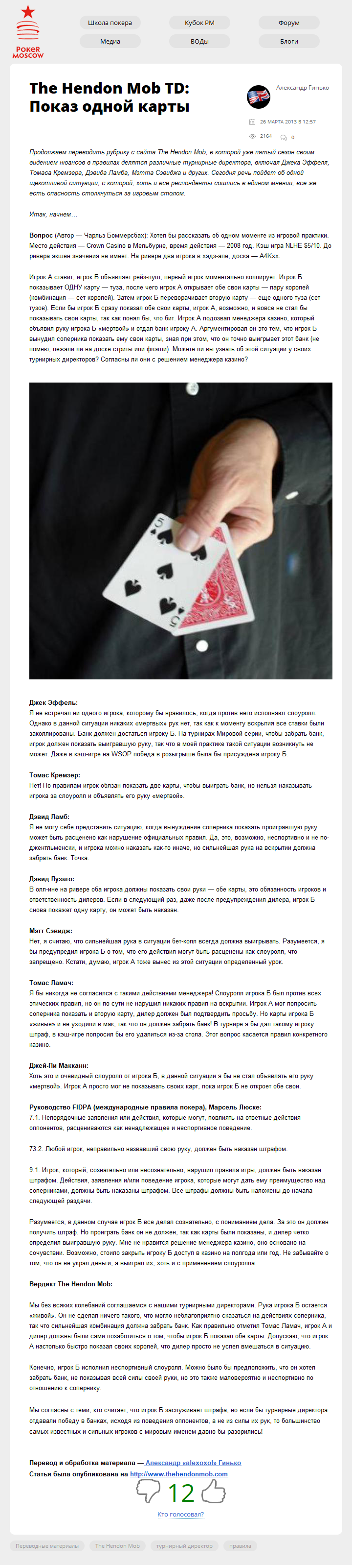 Продолжаем переводить рубрику с сайта The Hendon Mob, в которой уже пятый сезон своим видением нюансов в правилах делятся различные турнирные директора, включая Джека Эффеля, Томаса Кремзера, Дэвида Ламба, Мэтта Сэвиджа и других. Сегодня речь пойдет об одной щекотливой ситуации, с которой, хоть и все респонденты сошлись в едином мнении, все же…