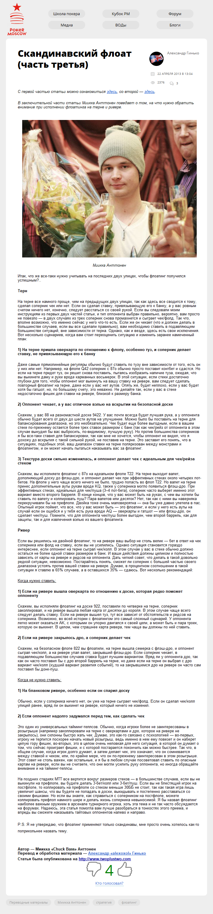 Итак, что же все-таки нужно учитывать на последних двух улицах, чтобы флоатинг получился…