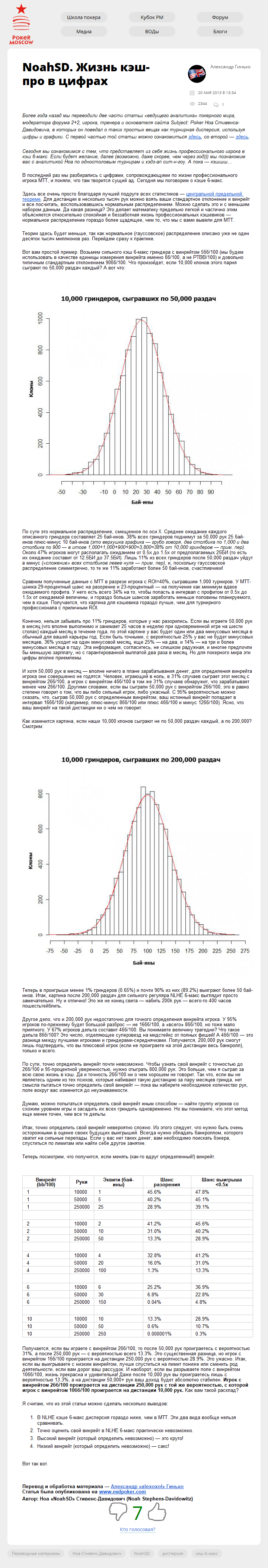 Более года назад мы переводили две части статьи "ведущего аналитика" покерного мира, модератора форума 2+2, игрока, тренера и основателя сайта Subject: Poker Ноа Стивенса-Давидовича, в которых он поведал о таких простых вещах как турнирная дисперсия, используя цифры и графики. С первой частью той статьи можно ознакомиться здесь, со…