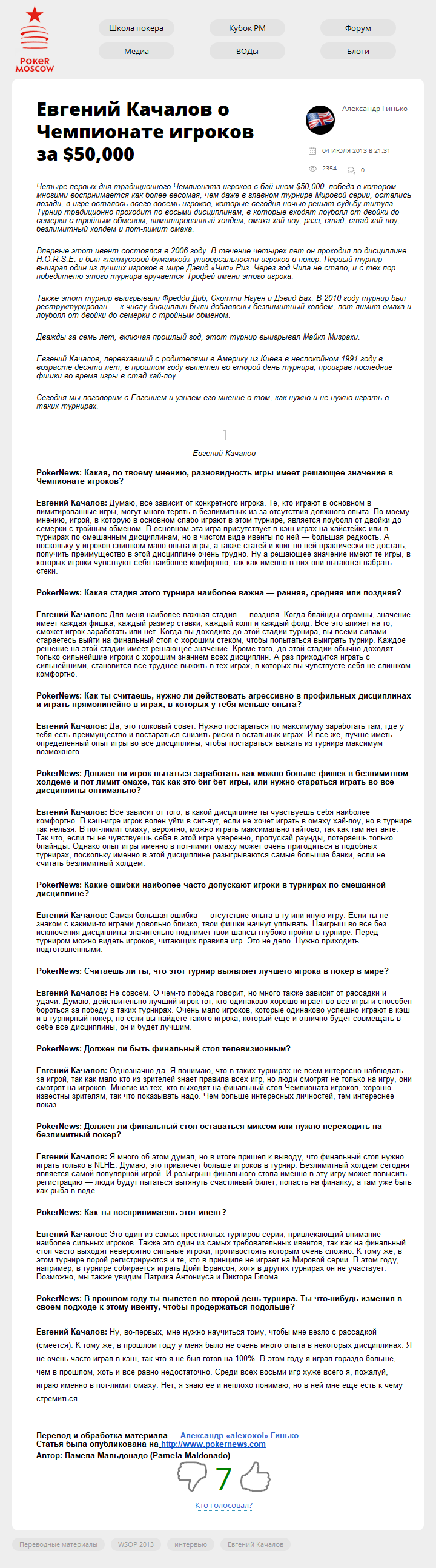 Четыре первых дня традиционного Чемпионата игроков с бай-ином $50,000, победа в котором многими воспрнимается как более весомая, чем даже в главном турнире Мировой серии, остались позади, в игре осталось всего восемь игроков, которые сегодня ночью решат судьбу титула. Турнир традиционно проходит по восьми дисциплинам, в которые входят лоуболл…