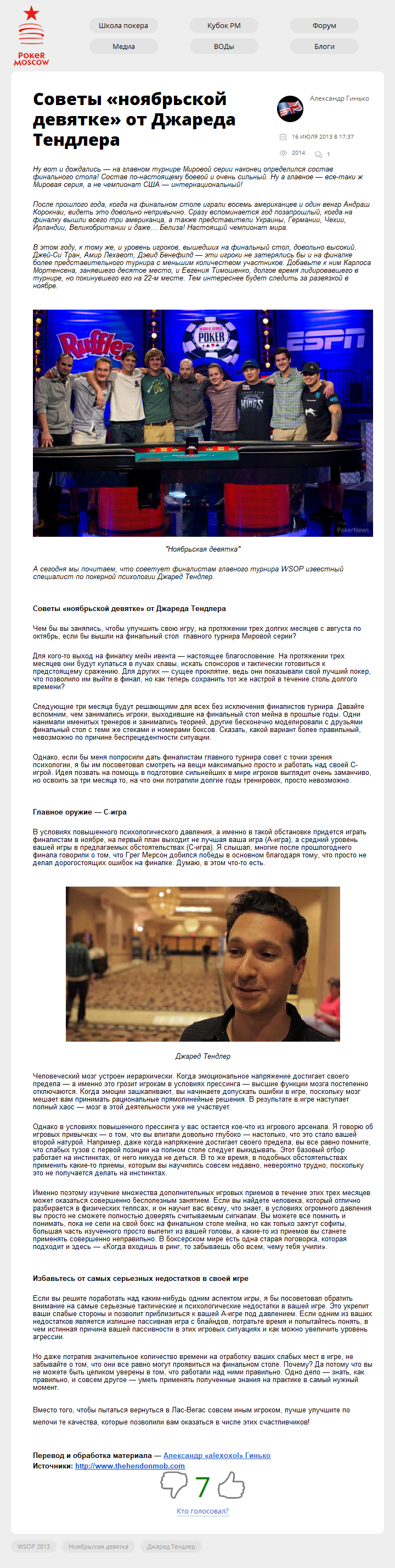 Ну вот и дождались — на главном турнире Мировой серии наконец определился состав финального стола! Состав по-настоящему боевой и очень сильный. Ну а главное — все-таки ж Мировая серия, а не чемпионат США — интернациональный!