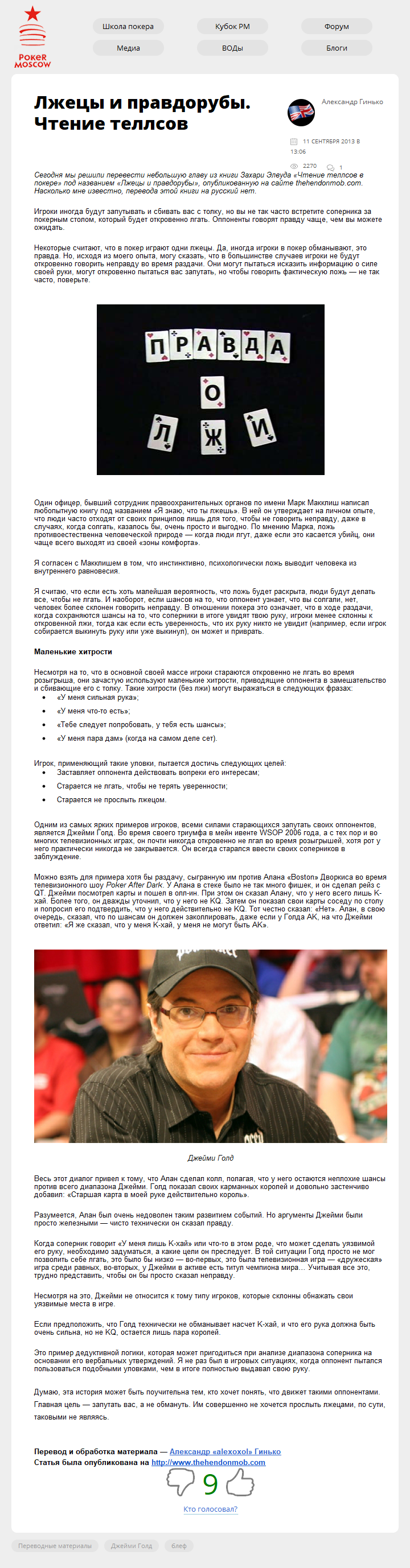 Сегодня мы решили перевести небольшую главу из книги Захари Элвуда "Чтение теллсов в покере" под названием "Лжецы и правдорубы", опубликованную на сайте thehendonmob.com. Насколько мне известно, перевода этой книги на русский нет.