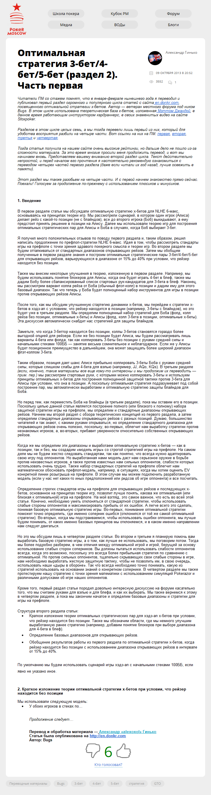 Читатели ПМ со стажем помнят, что в январе-феврале нынешнего года я переводил и публиковал первый раздел огромного и популярного цикла статей с сайта en.donkr.com, посвященного оптимальной стратегии x-бетов. Автор — ветеран местного форума под ником Bugs. В этом цикле использована теоретическая база x-бетов, изложенная Мэттом Джандой, в данное…