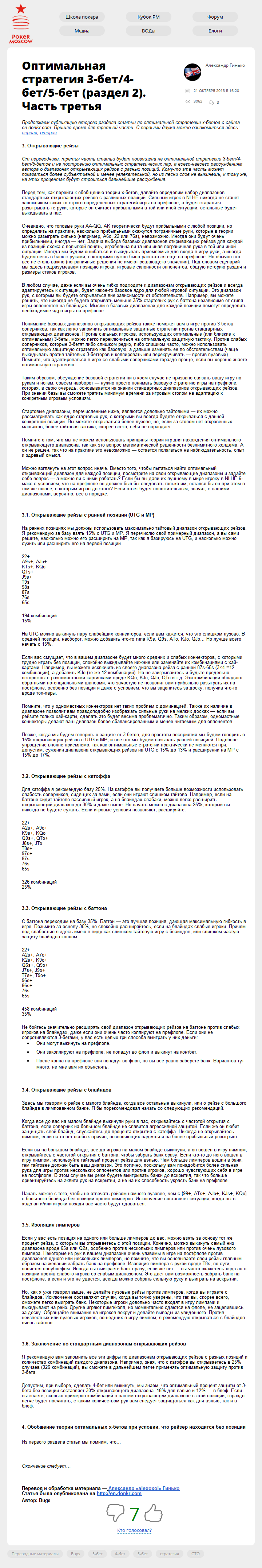 От переводчика: третья часть статьи будет посвящена не оптимальной стратегии 3-бет/4-бет/5-бетов и не построению…