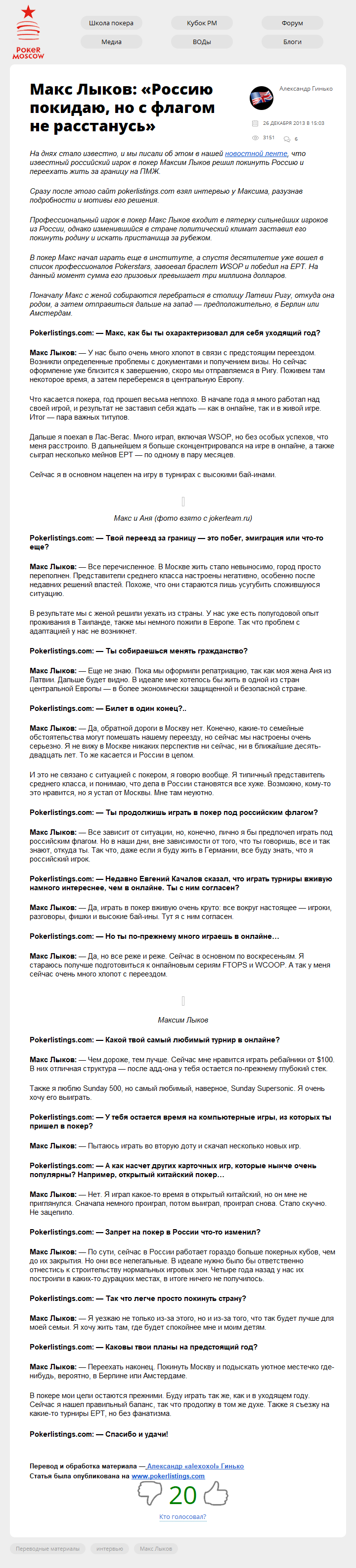 Сразу после этого сайт pokerlistings.com взял интервью у Максима, разузнав подробности и мотивы его решения.
