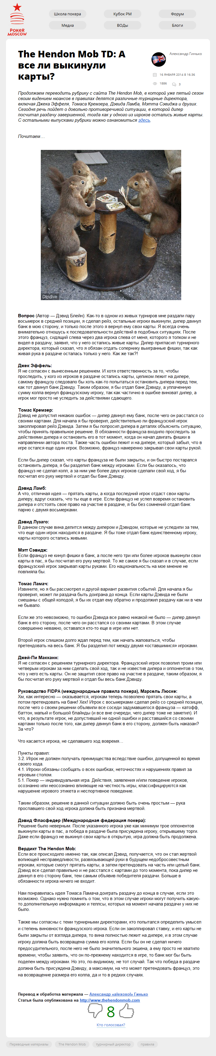 Продолжаем переводить рубрику с сайта The Hendon Mob, в которой уже пятый сезон своим видением нюансов в правилах делятся различные турнирные директора, включая Джека Эффеля, Томаса Кремзера, Дэвида Ламба, Мэтта Сэвиджа и других. Сегодня речь пойдет о довольно противоречивой ситуации, в которой дилер посчитал раздачу завершенной, тогда как у…