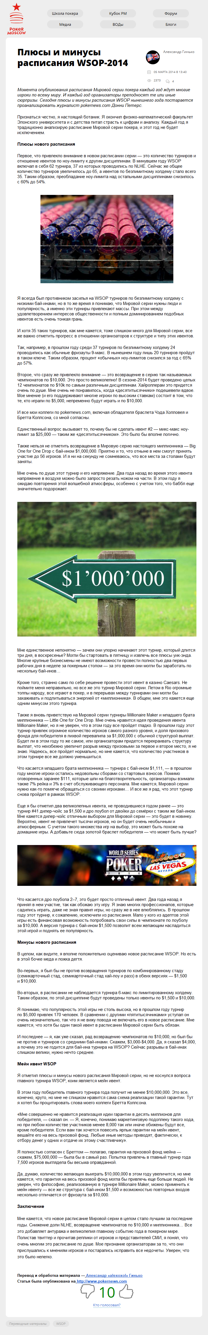 Момента опубликования расписания Мировой серии покера каждый год ждут многие игроки по всему миру. И каждый год организаторы преподносят те или иные сюрпризы. Сегодня плюсы и минусы расписания WSOP нынешнего года постарается проанализировать журналист pokernews.com Донни Петерс.