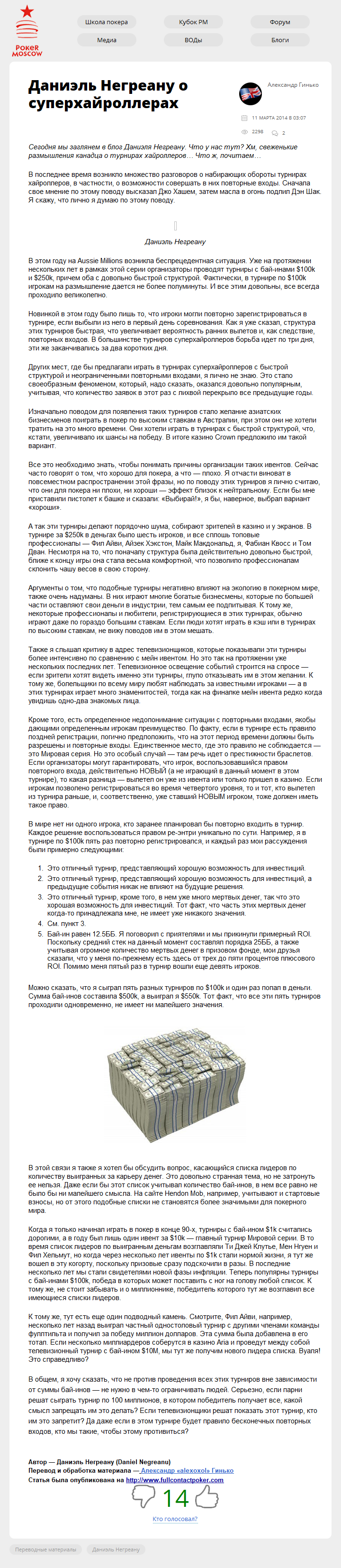Сегодня мы заглянем в блог Даниэля Негреану. Что у нас тут? Хм, свеженькие размышления канадца о турнирах хайроллеров… Что ж, почитаем…