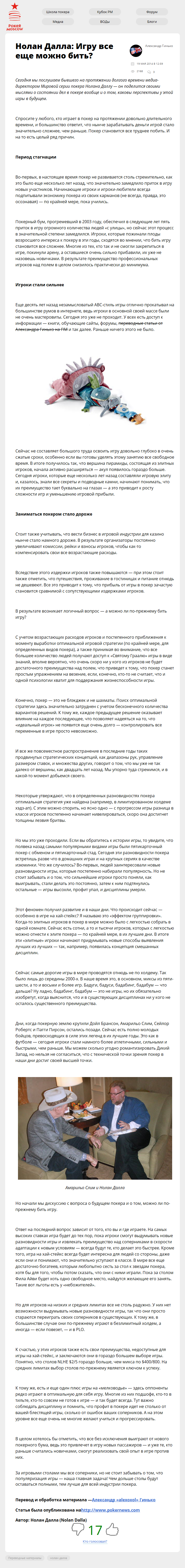Сегодня мы послушаем бывшего на протяжении долгого времени медиа-директором Мировой серии покера Нолана Даллу — он поделится своими мыслями о состоянии дел в покере вообще и о том, каковы перспективы у этой игры в будущем.