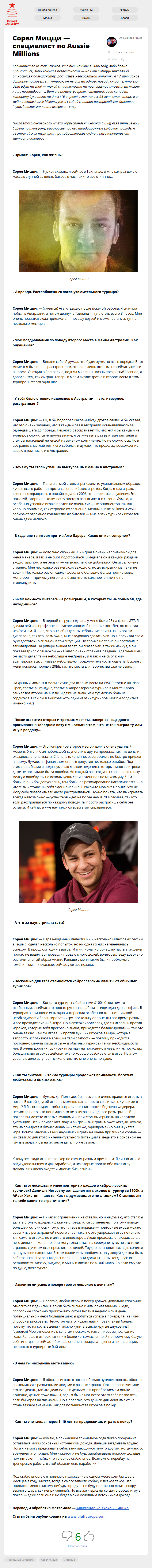 Большинство из тех игроков, кто был на коне в 2006 году, либо давно проигрались, либо канули в безвестность — но Сорел Мицци никогда не относился к большинству. Достигнув невероятной отметки в 12 миллионов долларов призовых в турнирах, он не дал ни одного повода сказать, что его дела идут на спад — такой стабильности на протяжении многих лет можно…