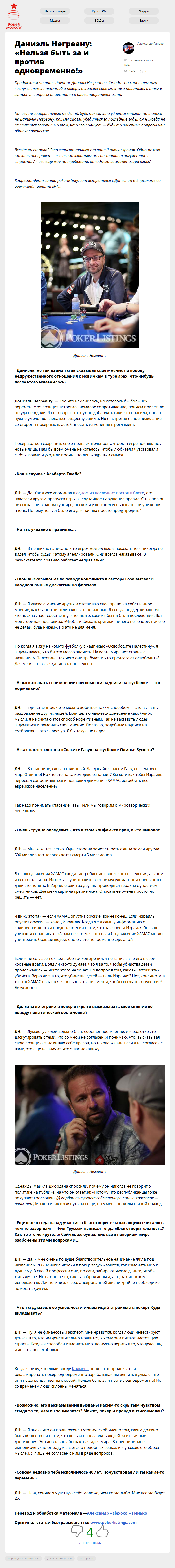 Продолжаем читать дневник Данилы Негранова. Сегодня он снова немного коснулся темы наказаний в покере, высказал свое мнение о политике, а также затронул вопросы инвестиций и благотворительности.