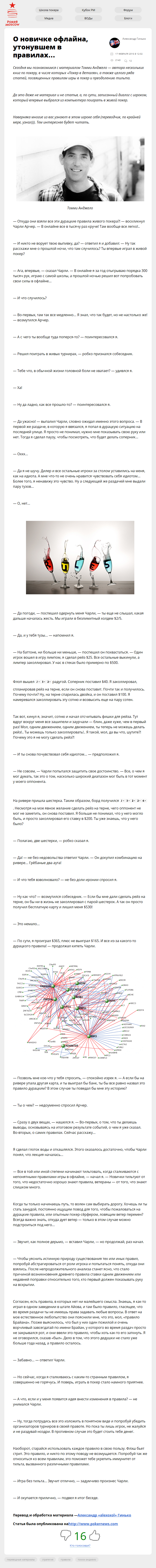 Да это даже не материал и не статья, а, по сути, записанный диалог с игроком, который впервые выбрался из компьютера поиграть в живой…