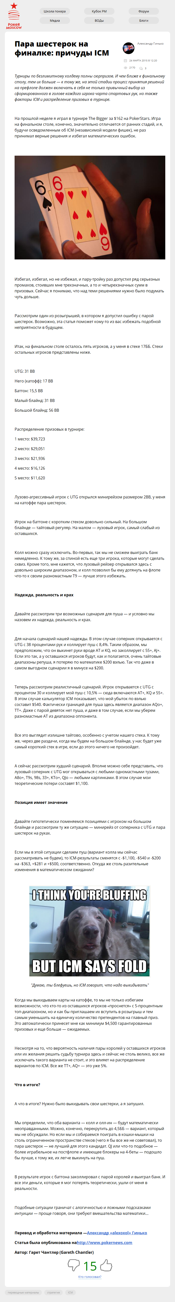 Турниры по безлимитному холдему полны сюрпризов. И чем ближе к финальному столу, тем их больше — к тому же, на этой стадии процесс принятия решений на префлопе должен включать в себя не только привычный выбор из сформированного в голове каждого игрока чарта стартовых рук, но также факторы ICM и распределение призовых в турнире.