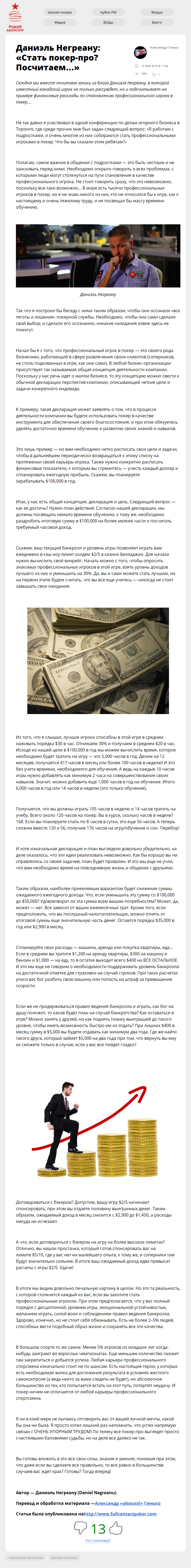 Сегодня мы вместе почитаем запись из блога Даниэля Негреану, в которой известный канадский игрок не только рассуждет, но и подсчитывает на примере финансовые расклады по становлению профессионального игрока в покер…