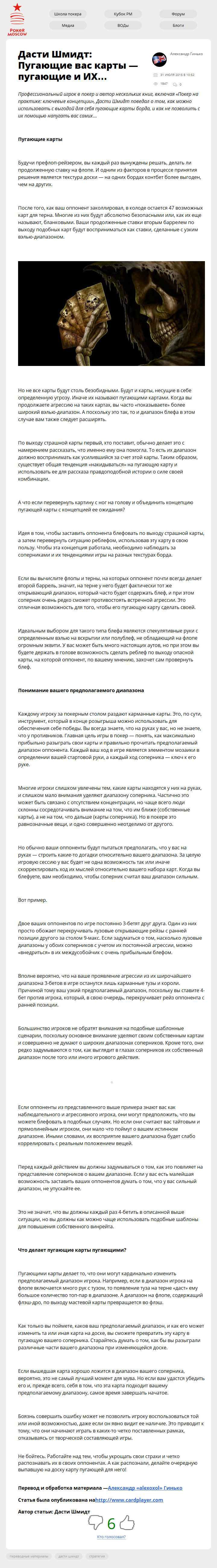Профессиональный игрок в покер и автор нескольких книг, включая «Покер на практике: ключевые концепции», Дасти Шмидт поведал о том, как можно использовать с выгодой для себя пугающие карты борда, и как не позволить с их помощью напугать вас самих…